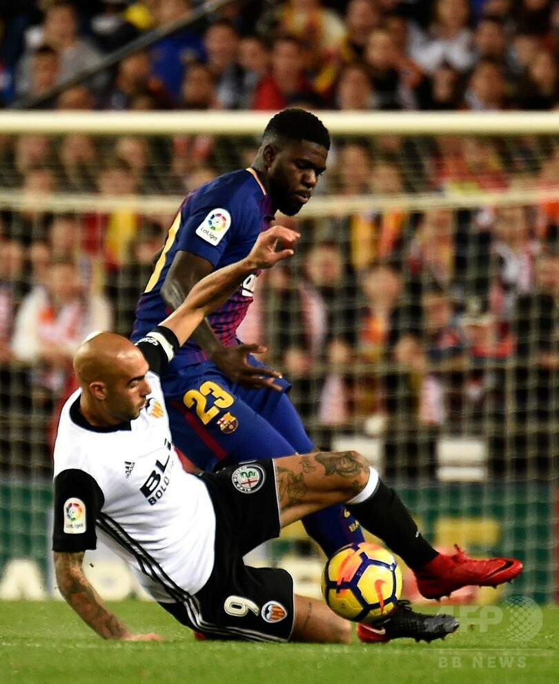 【11月27日 AFP】17-18スペイン1部リーグは26日、第13節の試合が行われ、首位のFCバルセロナ(FC Barcelona)はリオネル・メッシ(Lionel Messi)の得点が認められない不運がありながらも、2位バレンシア(Valencia CF)と1-1で引き分け、勝ち点4差を保った。