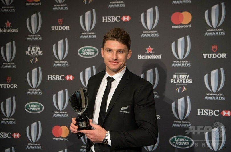 バレットは、ニュージーランドのチームメート、リコ・イオアネ(Rieko Ioane)やイングランドのオーウェン・ファレル(Owen Farrell)とマロ・イトジェ(Maro Itoje)、オーストラリアのイズラエル・フォラウ(Israel Folau)を押しのけ、元同代表のレジェンド、リッチー・マッコウ(Richie McCaw)と同じく2年連続の受賞を果たしている。(c)AFP