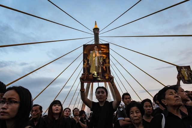 前国王の葬儀は伝統に倣い、死去から1年後に行われた。軍の兵士らは遅々とした足取りで数時間にわたって行進し、僧侶らは経を唱えた。新聞とテレビからは他のニュースが一切、消えた。