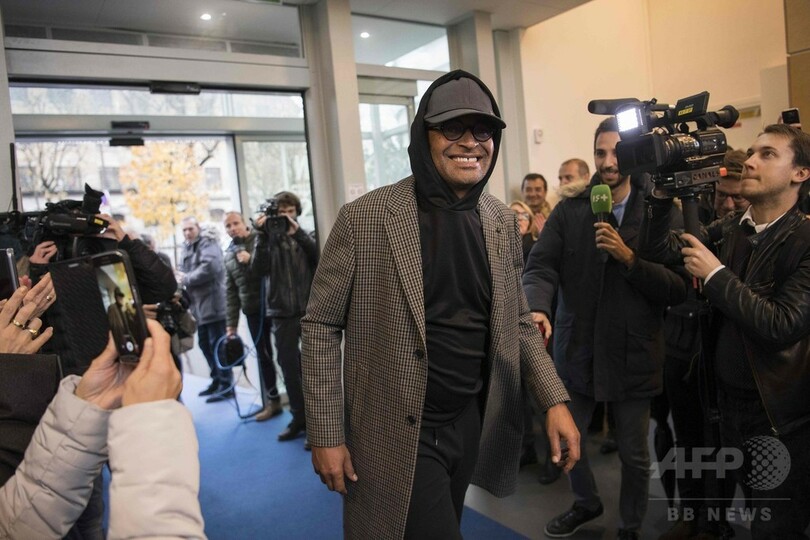 ヤニック・ノア(Yannick Noah)監督率いるフランスは、26日に行われた同大会決勝で通算10度目の優勝を飾った。快挙から一夜明け、トロフィーを手に連盟を訪れた選手らはファンとの写真撮影に笑顔で応じていた。(c)AFP
