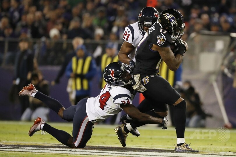 【11月28日 AFP】17NFLは27日、第12週の1試合が行われ、ボルティモア・レイヴンズ(Baltimore Ravens)がパントフェイクでRBアレックス・コリンズ(Alex Collins)のタッチダウンをお膳立てするなどして、ヒューストン・テキサンズ(Houston Texans)に23-16で勝利した。