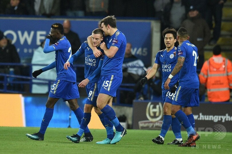 ジェイミー・バーディー(Jamie Vardy)のリーグ通算100得点目とリヤド・マフレズ(Riyad Mahrez)のゴールで2点をリードしたレスターに対し、トッテナムは後半に立て直したものの、ハリー・ケイン(Harry Kane)が1点を返した後はフェルナンド・ジョレンテ(Fernando Llorente)が決定機を逃し、ダニー・ローズ(Danny Rose)が倒れた場面ではPKの笛が吹かれなかった。 (c)AFP/Tim NASH