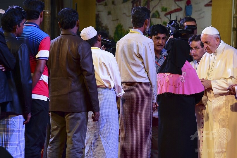 【12月2日 AFP】アジア歴訪の一環としてバングラデシュを訪問しているローマ・カトリック教会のフランシスコ(Francis)法王は1日、ミャンマーでの迫害を逃れ入国したロヒンギャ(Rohingya)難民と首都ダッカで面会した後、今回のアジア歴訪で初めて難民たちを「ロヒンギャ」と呼んだ。