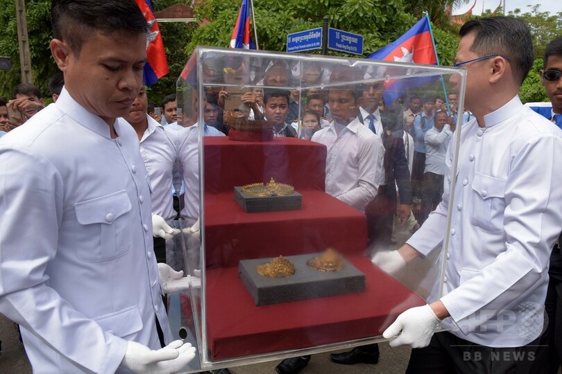 【12月4日 AFP】1970年代のカンボジア内戦中にアンコールワット(Angkor Wat)の遺跡群から略奪され、昨年英国で発見された黄金の装飾品10点が2日、カンボジアに返還された。