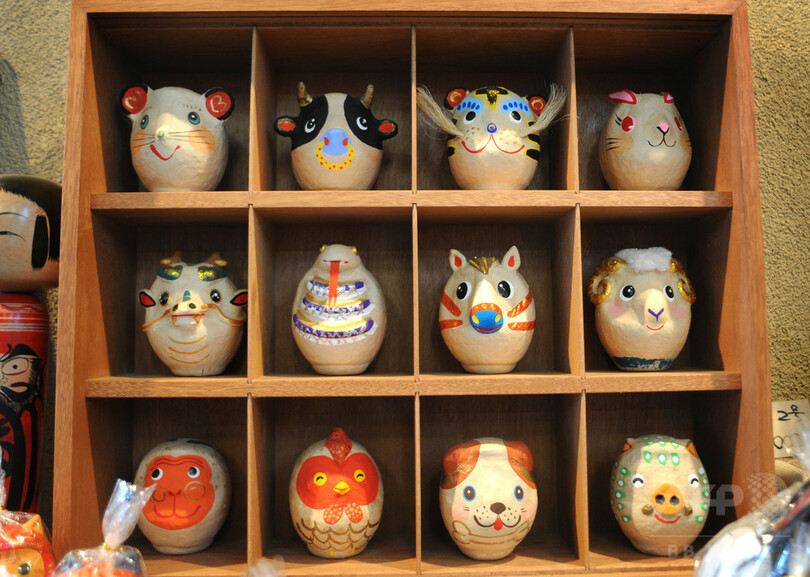 干支だるまは、同店のほか、東京都台東区の浅草寺(Sensoji Temple)の羽子板市や、川崎市の川崎大師平間寺(Kawasaki Daishi Heikenji Temple)の初詣などで売り出される予定だ。(c)AFPBB News