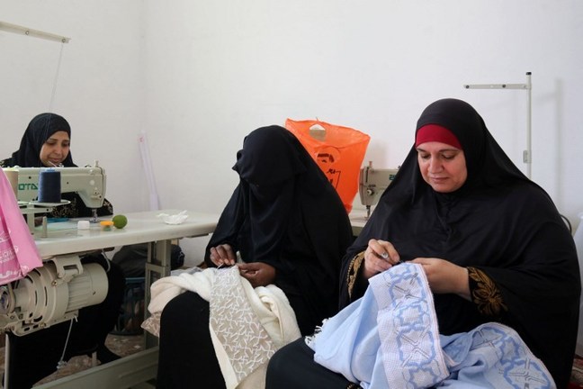 「このプロジェクトは10人の女性で始まり、今では300人ものメンバーがいる」と同プログラムのディレクター、ナワル・アラダ(Nawal Aradah)さんは話す。「私たちはショールやハンドバッグ、タオルにシーツ、家庭の様々な装飾品を依頼に応じて作っている」