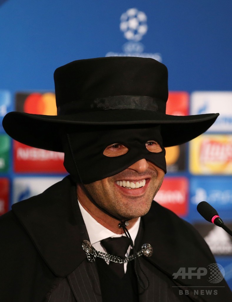 【12月7日 AFP】ウクライナ・プレミアリーグ、シャフタール・ドネツク(Shakhtar Donetsk)のパウロ・フォンセカ(Paulo Fonseca)監督が6日、欧州チャンピオンズリーグ(UEFA Champions League 2017-18)のマンチェスター・シティ(Manchester City)戦後の記者会見に怪傑ゾロ(Zorro)のコスチュームを着て登場した。