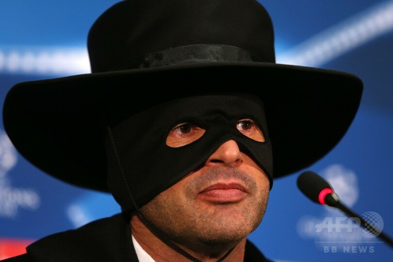 【12月7日 AFP】ウクライナ・プレミアリーグ、シャフタール・ドネツク(Shakhtar Donetsk)のパウロ・フォンセカ(Paulo Fonseca)監督が6日、欧州チャンピオンズリーグ(UEFA Champions League 2017-18)のマンチェスター・シティ(Manchester City)戦後の記者会見に怪傑ゾロ(Zorro)のコスチュームを着て登場した。