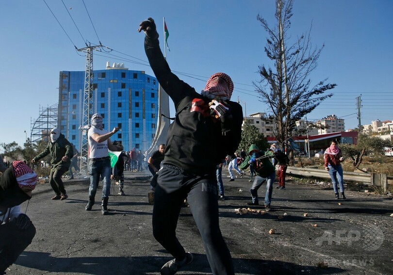 【12月8日 AFP】(更新)パレスチナ自治区各地で8日、ドナルド・トランプ(Donald Trump)米大統領がエルサレムをイスラエルの首都と認定したことに抗議するパレスチナ人らがイスラエルの治安部隊と衝突し、1人が死亡した。同自治区ガザ地区(Gaza Strip)を実効支配するイスラム原理主義組織ハマス(Hamas)は、この日をトランプ氏の決定に対する「怒りの日」とするよう呼び掛けていた。