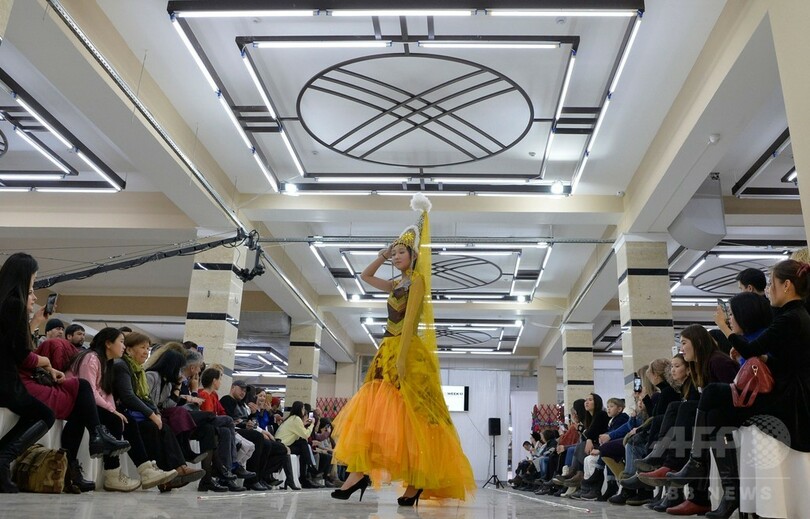会期中には地元デザイナーのIvan KornilovやBekmurzat kyzy Kasiyet、Askarali uulu Zalkarらが新作を発表した。(c)AFP