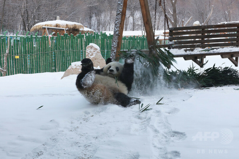 雪の中で大はしゃぎ! ジャイアントパンダの「思嘉」