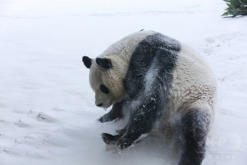雪の中で大はしゃぎ! ジャイアントパンダの「思嘉」
