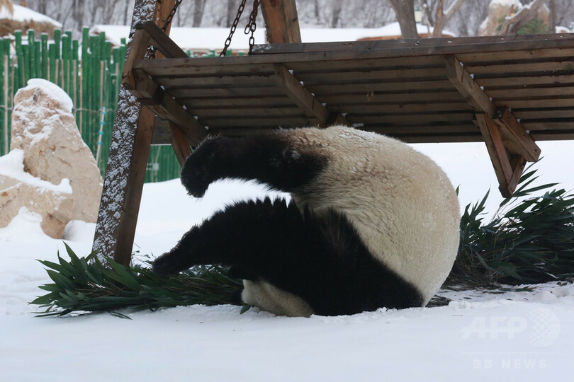 思嘉が雪の中で転げ回る姿に、来園客からは拍手や歓声まで上がっている。(c)CNS/JCM/AFPBB News