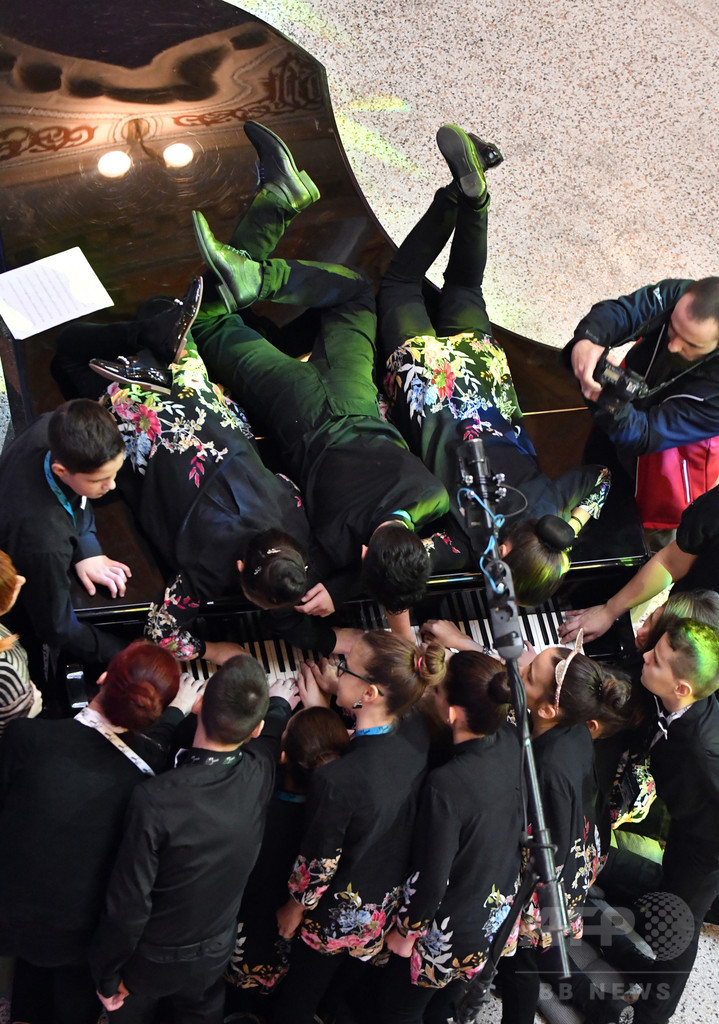 【12月13日 AFP】ボスニア・ヘルツェゴビナで12日、子ども18人と音楽教師2人がピアノ1台を使った連弾に成功し、世界記録を更新した。膝立ちになったり、ピアノの上に腹ばいになったりしながら鍵盤に手を伸ばす子どもの姿も見られた。