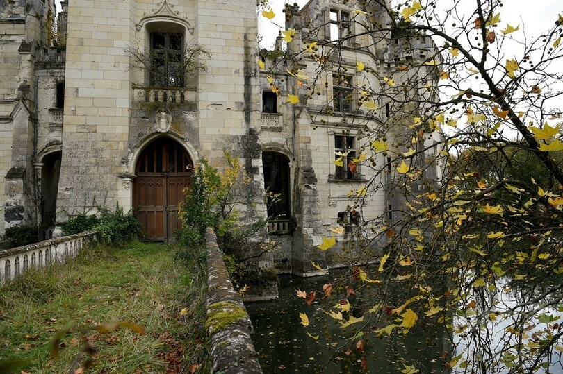フランス西部、トゥール(Tours)の街からそう遠くないレトロワムーティエ(Les Trois Moutiers)の近郊。廃虚となったシャトーは周りをほとんどぐるりと水に囲まれて立っている。