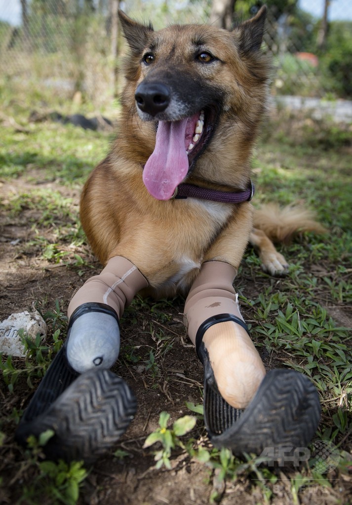 前脚2本切断された犬、特注義足で新たな命もらう タイ