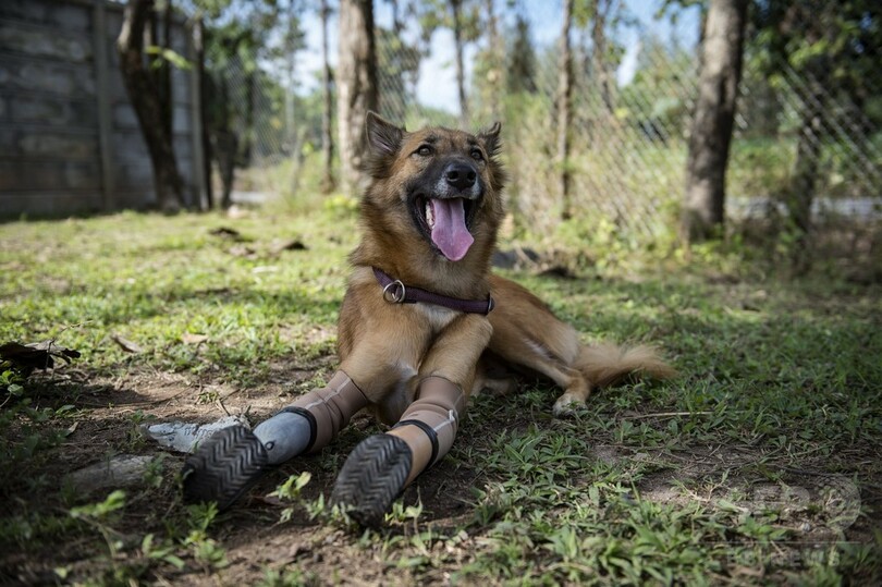 前脚2本切断された犬、特注義足で新たな命もらう タイ