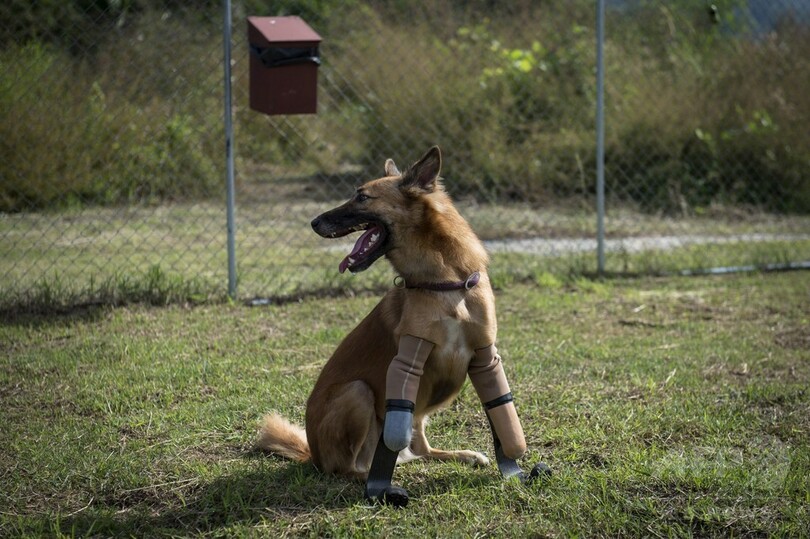 前脚2本切断された犬、特注義足で新たな命もらう タイ