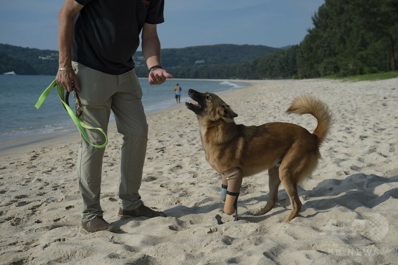 前脚2本切断された犬、特注義足で新たな命もらう タイ