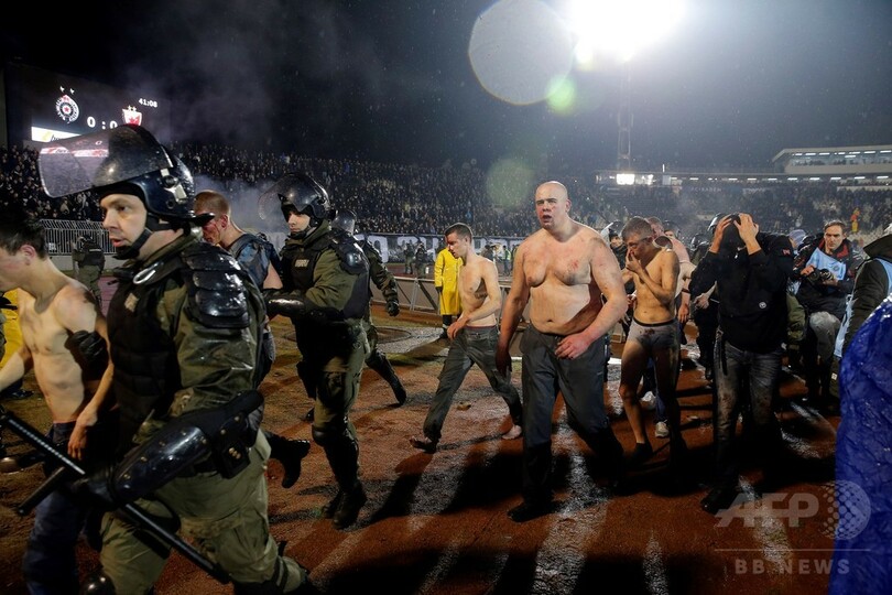パルチザンの本拠地スタディオン・パルチザーナ(Stadion Partizana)を訪れていたAFPのカメラマンによると、乱闘騒ぎはホームサポーターがいる一角で発生し、10分ほど続いたという。