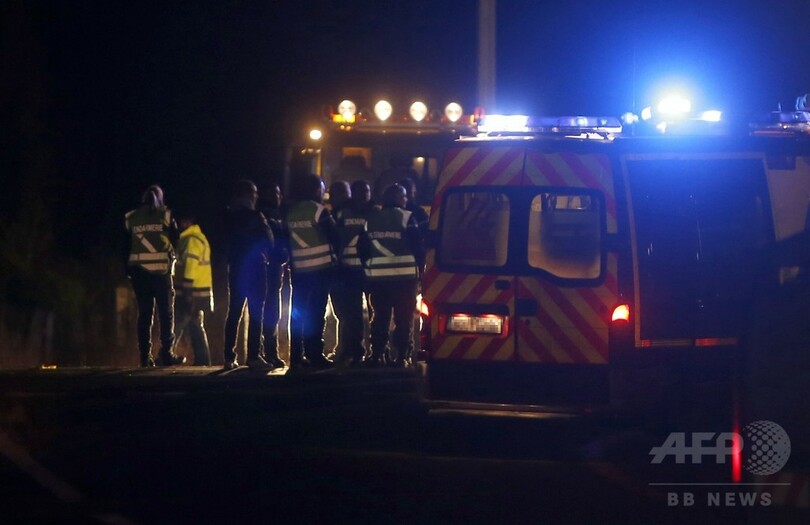 ラジオ局フランス・ブルー(France Bleu)は列車がバス後部に突っ込んだと報道。仏メディアが掲載した写真には、2つに切断されたバスが写されている。現場にはヘリコプター4機や救急隊員約70人が出動し、救助活動に当たった。(c)AFP