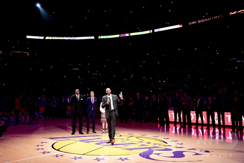 【12月19日 AFP】米プロバスケットボール(NBA)のロサンゼルス・レイカーズ(Los Angeles Lakers)で通算5度の優勝を成し遂げたコービー・ブライアント(Kobe Bryant)氏の背番号を永久欠番とする式典が18日、家族やマジック・ジョンソン(Magic Johnson)氏ら同球団のレジェンドが出席する中で行われた。