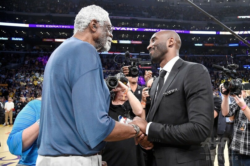 レイカーズの本拠地ステープルズ・センター(Staples Center)では、昨季王者ゴールデンステイト・ウォリアーズ(Golden State Warriors)戦のハーフタイムに、ブライアント氏がつけていた背番号「8」と「24」が、70年の歴史を誇るチームの偉大なアイコンの仲間入りを果たした。