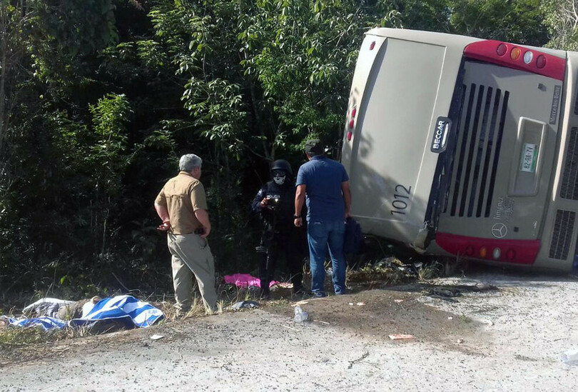 バスは乗客31人を乗せ、交通量のまばらな直線道路を走行し、遺跡のあるリゾート地マハウアル(Mahahual)に向かっていた。事故の原因は明らかになっていない。