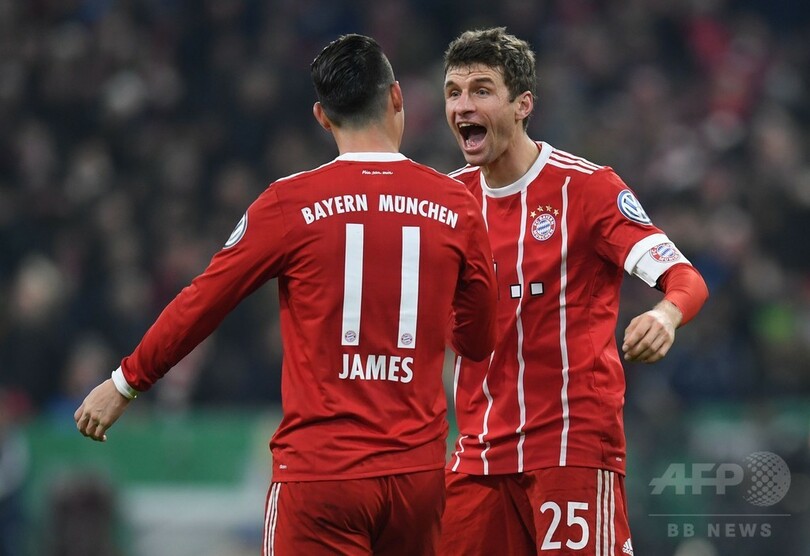 【12月21日 AFP】サッカードイツカップ(German Cup 2017-18)は20日、3回戦が行われ、バイエルン・ミュンヘン(Bayern Munich)はトーマス・ミュラー(Thomas Mueller)の決勝点で2-1とライバルのボルシア・ドルトムント(Borussia Dortmund)を下し、準々決勝進出を決めた。