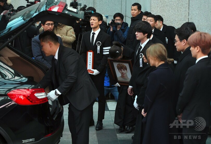 【12月21日 AFP】(写真追加)韓国の人気男性アイドルグループ「SHINee(シャイニー)」のメンバーで今月18日に死去したキム・ジョンヒョン(Kim Jong-Hyun)さん(27)の告別式が21日、首都ソウルの峨山病院(Asan Medical Centre)で行われ、Kポップ界のトップスターらが出棺に立ち会った。