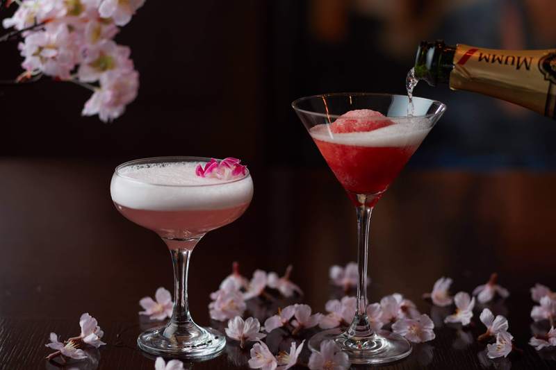 インターナショナルな雰囲気のバーからは、桜の香りとともにお花見気分を楽しめる新作カクテル3種が登場。「桜のシャンパンソルベ」は、 長野県産の桜を濃縮したシロップをつかった自家製のソルベにシャンパンを注いでつくる華やかなカクテル。アルコールが苦手なあなたには、「桜レモネード」がおすすめ。エディブルフラワーを入れて凍らせた氷をつかい、桜風味のノンアルコールレモネードカクテルに仕上がっている。バーでお花見気分を楽しんでみてはいかが?