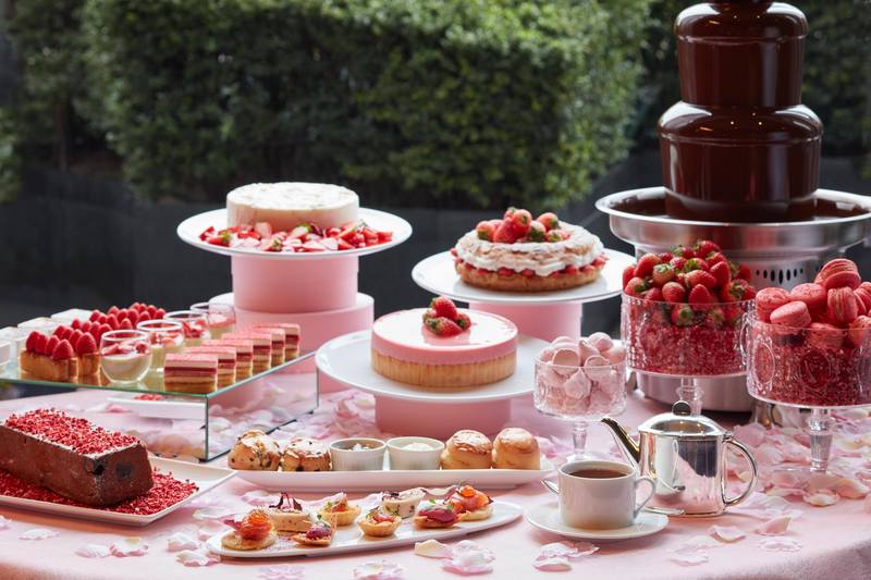 伝統的なビストロ料理をスタイリッシュにアレンジしたオールデイダイニングでは、苺や桜のスイーツをブッフェスタイルで好きなだけ堪能できるアフタヌーンティーの新メニューが登場。福岡県産あまおうのチョコレートディップをはじめ、赤やピンクの色とりどりのストロベリースイーツがずらり! ロサンゼルス発のプレミアムーガニックティーブランド「ART OF TEA」社より、今回のアフタヌーンティーのためにチョイスされた紅茶とともにティータイムを満喫して。