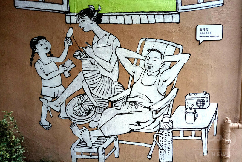 昔の市民の生活を壁画に再現 上海の集合住宅