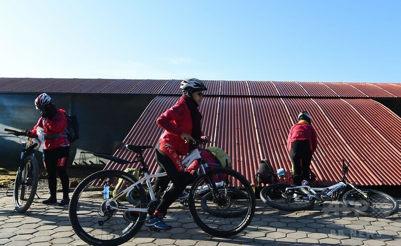 尼僧のジグメ・コンチョク・ラモ(Jigme Konchok Lhamo)さん(23)は、地震被災者の救済活動の最中に人身売買に遭遇したことが辺境地を回る自転車巡礼のきっかけだと述べ、「私たちはみな女性であり、女性でも何でもできるということを伝えたい。女性たちが役に立たないということはなく、売買されるべきではない」と話した。(c)AFP