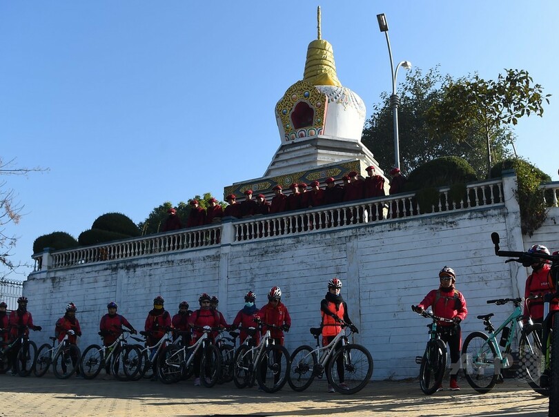 「カンフー尼さん」200人が自転車で3000キロ走破へ 女性の権利訴え