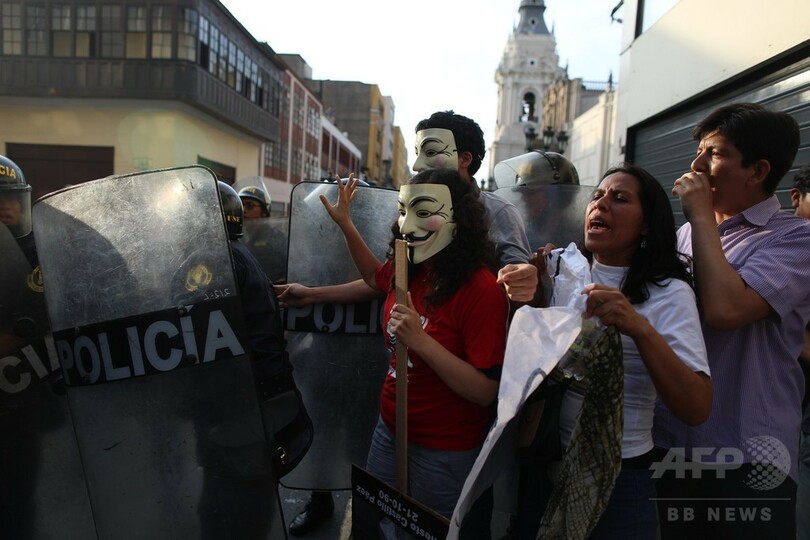 南米ペルー首都、フジモリ氏の恩赦に数千人が抗議