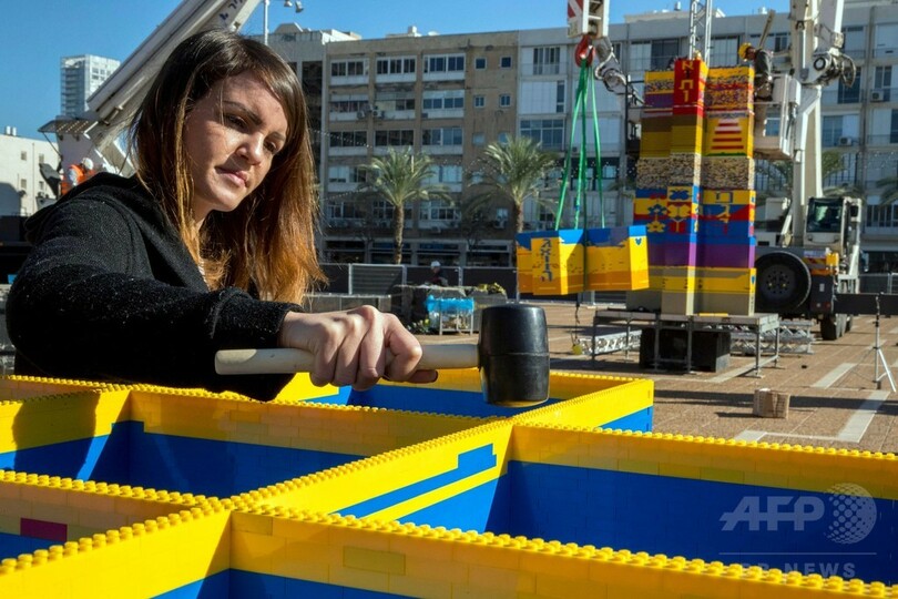 ギネス世界記録によると、レゴ製タワーの世界記録は2015年にイタリアでミラノ国際博覧会(Expo Milan 2015)のために建てられた高さ35メートル5センチのもの。テルアビブ市当局はAFPに対し、新記録の認定のため、ドローン(小型無人機)で撮影された写真などを含む証拠をギネスに提出する予定だと説明している。(c)AFP
