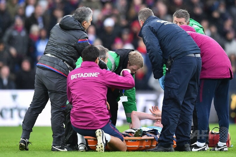 終盤にシティのGKエデルソン(Ederson Santana de Moraes)がPKを止めた直後、ベルギー代表のデ・ブルイネは、クリスタルパレスのジェイソン・パンチェオン(Jason Puncheon)の激しいタックルを受けて倒れ込み、担架で運び出されてピッチを後にした。