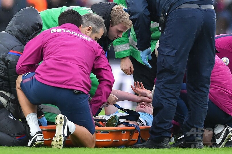 終盤にシティのGKエデルソン(Ederson Santana de Moraes)がPKを止めた直後、ベルギー代表のデ・ブルイネは、クリスタルパレスのジェイソン・パンチェオン(Jason Puncheon)の激しいタックルを受けて倒れ込み、担架で運び出されてピッチを後にした。