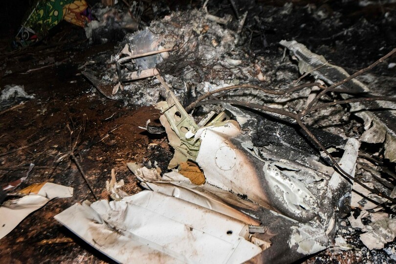 同省は別の声明で、この小型機は外国人乗客10人と地元の乗務員2人を乗せた民間機だったと明らかにしていた。イダルゴ報道官が公開した墜落現場の写真には、森林地帯に散らばり炎上する残骸が写っている。(c)AFP