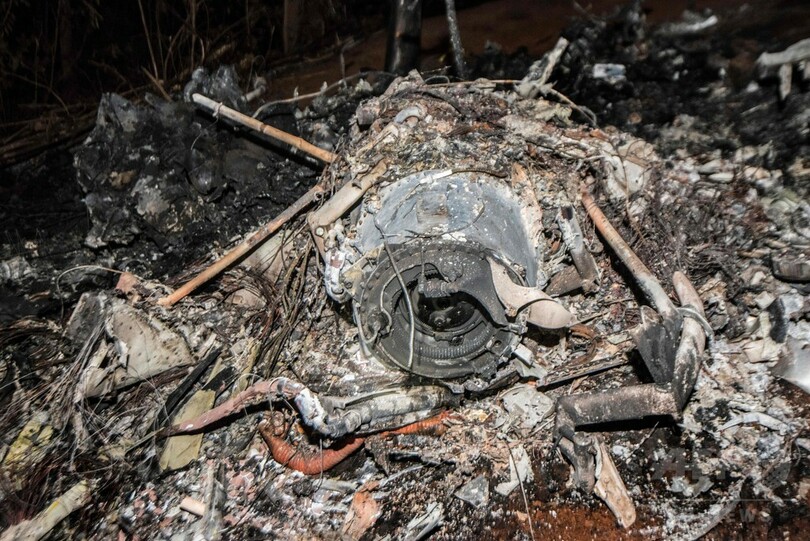同省は別の声明で、この小型機は外国人乗客10人と地元の乗務員2人を乗せた民間機だったと明らかにしていた。イダルゴ報道官が公開した墜落現場の写真には、森林地帯に散らばり炎上する残骸が写っている。(c)AFP