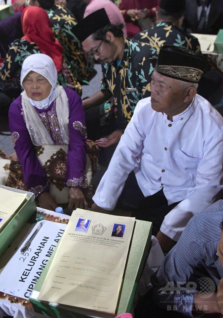 インドネシア首都で集団結婚式、高齢カップルら437組が参加
