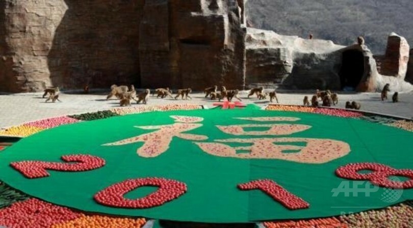 アカゲザル自然保護区でも年越しパーティー 中国・河南省