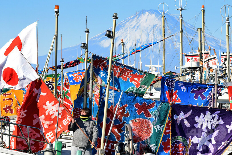 【1月4日 AFPBB News】神奈川県鎌倉市の腰越漁港で4日、1年間の豊漁と安全を祈願する恒例の正月行事「船祝い」が行われた。近隣から詰めかけた参観者約500人が、色鮮やかな大漁旗で飾られた漁船の初船出を見送った。