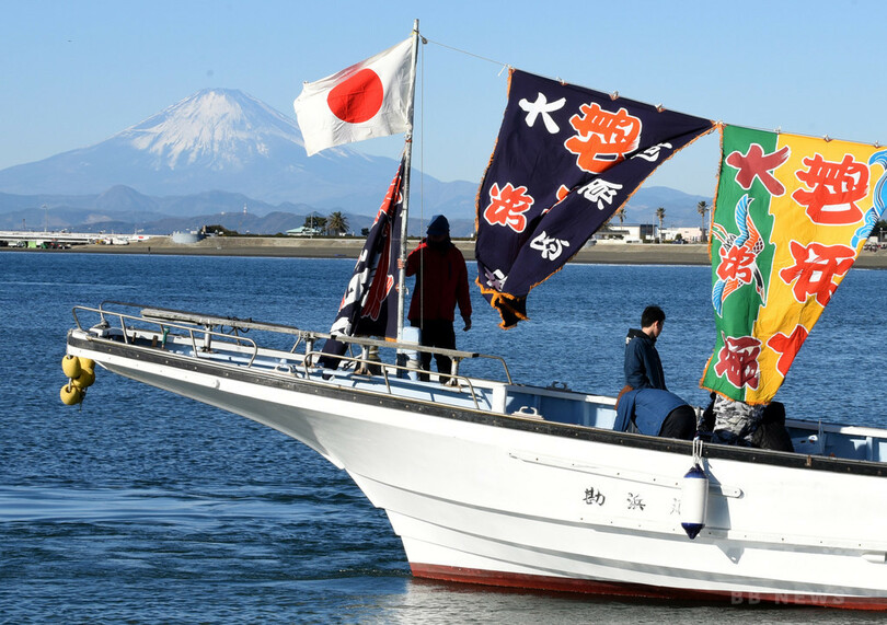 【1月4日 AFPBB News】神奈川県鎌倉市の腰越漁港で4日、1年間の豊漁と安全を祈願する恒例の正月行事「船祝い」が行われた。近隣から詰めかけた参観者約500人が、色鮮やかな大漁旗で飾られた漁船の初船出を見送った。