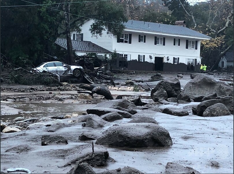 サンタバーバラ郡消防局(SBCFD)がツイッター(Twitter)に投稿した複数の写真には街が泥に覆われ、道路も倒木で通れなくなっている様子が写っている。モンテシートでは倒壊した家の中に数時間にわたり閉じ込められていた少女(14)が救助されたという。