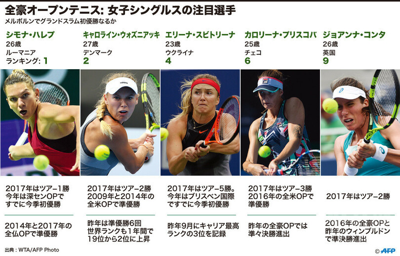 セレーナ不在の全豪OP女子、GS初優勝を狙うAFP注目の5人