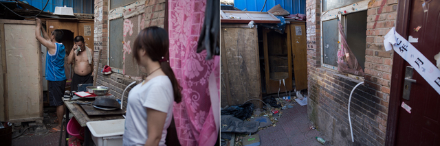 その後、私は出稼ぎ労働者の町を撮影し始めた。特に、后廠(Houchang)地区は市街からさらに離れていて、他の集落よりも小さかった。私はそこへ夏の間中、通った。ニュースから逃げ出せる隙を見つけては面白い瞬間、いい写真を求めて通った。しばらくすると、そのうち何か起きそうだといううわさが広まり始めた。ここは取り壊されるかもしれない、と誰もが言っていた。本文を担当するジョアンナ・チウ(Joanna Chiu)記者と私は粘り強く待っていた。立ち退きの瞬間を記事にできれば理想的だが、いつそれが起こるかは分からない。当局はいつでも気が向いたときにやって来る。