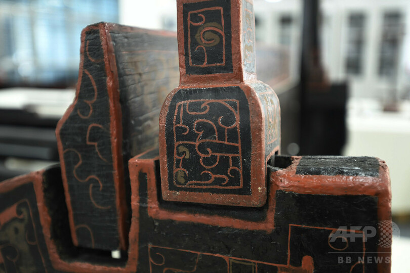 成都市は中国の漆芸が始まった地域の中心にあり、湖南省(Hunan)長沙市(Changsha)の馬王堆漢墓(まおうたいかんぼ)と前漢の時代にわたり朝鮮半島北部の楽浪地方に残る墳墓・楽浪漢墓(らくろうかんぼ)からも、成都で制作された漆器が出土している。また、成都市の商店街で発見された船棺墓から出土した漆器類からは、当時の経済状況や漆芸、後蜀(こうしょく)文化の歴史がわかる。(c)CNS/JCM/AFPBB News