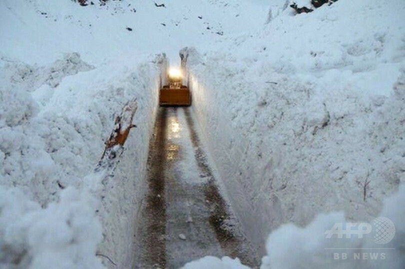 【1月12日 AFP】記録的な大雪に見舞われたフランス・アルプス(French Alps)のスキーリゾート近郊で10日、雪崩ですっかり埋まってしまった道路の除雪作業が行われ、高さ6メートルの雪の壁が出現した。道幅は車1台がやっと通れるだけ。山間を行き来する車のドライバーたちは、もろい「雪のトンネル」を通り抜けることを余儀なくされている。
